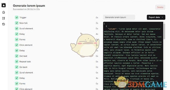 通用操作:Trigger 触发、Delay 延迟、导出数据( JSON / CSV / Plain text 纯文本 )、Repeat task 重复任务