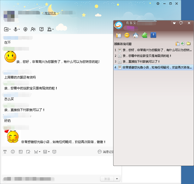 下载有客宝快捷回复软件是一款专业的快捷回复的软件工具,软件适配了qq、飞信、微信等聊天软件。软件支持发送表情、密码管理、网址收藏等等功能。非常方便快捷,软件界面简约,布局直观清晰。操作简单,容易上手,是一款十分实用的工具。