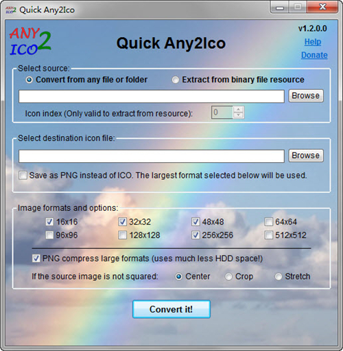 如果你想将照片转换成一个图标或提取的图标文件对象(一个文件夹,例如)使用前者,这是默认选中。如果你想从一个二进制文件的资源中提取的图标,这样一个可执行文件,一个DLL,动画光标,或一个existaing图标文件,选择从二进制文件中提取资源。