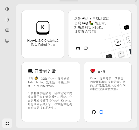 下载keyviz是一款开源轻量的键盘操作可视化软件,如果用户在进行录制教学的时候想要将自己的键盘和鼠标操作也录制下来的话不妨试试该软件。软件能轻松在屏幕上将用户的按键操作都显示出来,方便用户录制操作过程,这是一款很不错的软件,对该软件感兴趣的小伙伴快来下载试试吧!
