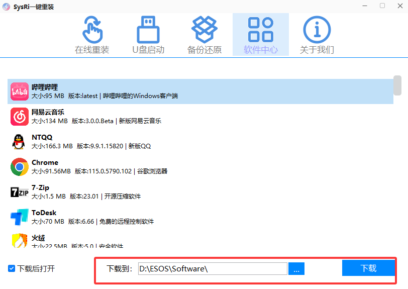 下载SysRi一键重装是一款完全纯净无广的系统重装软件,软件能帮助用户在线对电脑系统进行重装,在重装的时候可以自己选择想要安装的版本。此外在进行重装之前还能使用软件对运行的系统进行备份,方便随时还原,这是一款很不错的软件,对该软件感兴趣的小伙伴千万别错过,快来下载吧!