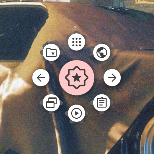 2、点击图标,会出现好多小的圆形图标,每个都对应着不同的功能。