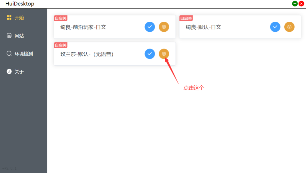 2、来到【开始】页面,点击桌宠旁边的齿轮图标。