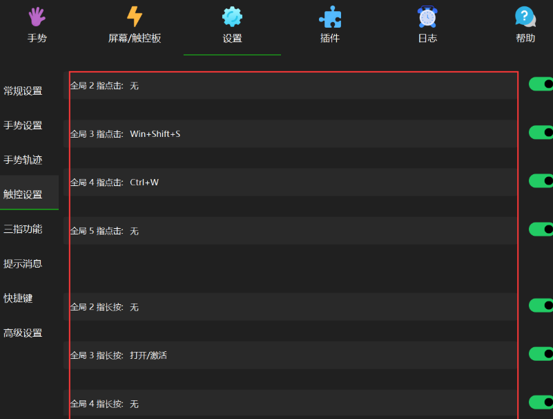 3、手势提示:如果设置的手势太多想不起手势快捷键,不妨开启手势提示功能。