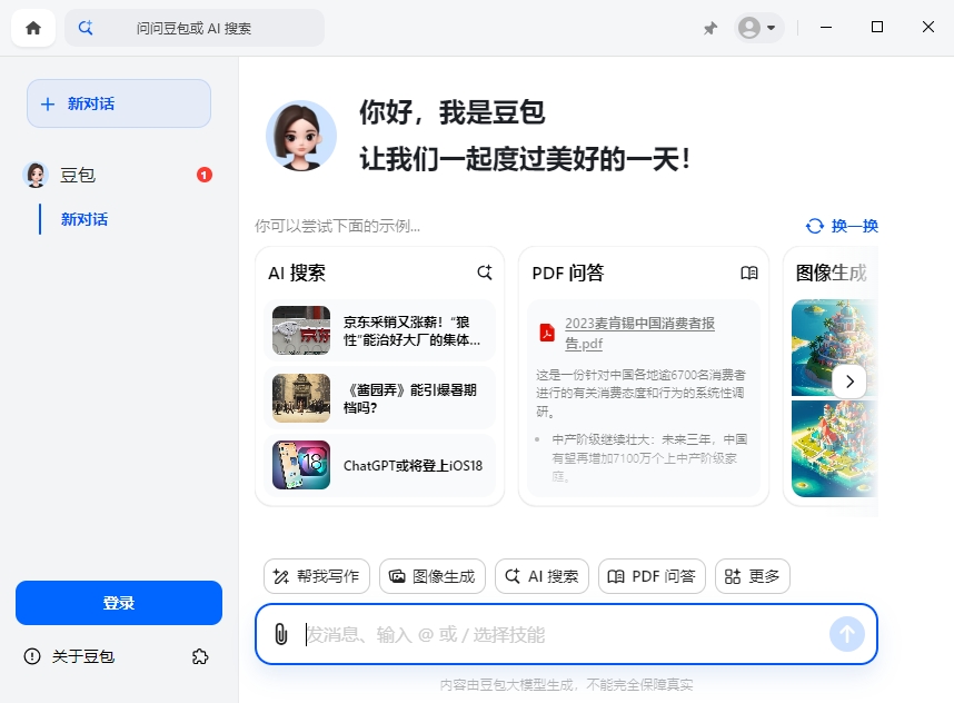 豆包官方版是一款非常实用的AI聊天助手,软件功能强大,操作简单易用,支持超过60种语言的翻译服务,提供搜索、翻译、解释、总结等各类 AI 辅助功能,涵盖广泛领域,包括历史、科学、文化等多元知识,满足用户在不同场景下的语言翻译需求,大大提升了信息获取的效率,感兴趣的小伙伴赶快下载体验吧!