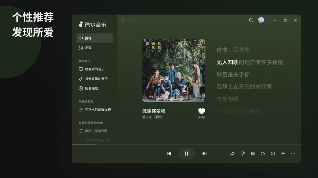 汽水音乐是一款功能强大的音乐播放软件,软件界面简洁,操作简单易用,提供了丰富实用的功能和界面设置,如自动匹配歌词、声道平衡调节等,同时具备个性化推荐、分类电台、特色榜单等功能,支持多种格式的音频文件,包括MP3、WAV、FLAC等音频格式,满足大家多样化的听歌需求,感兴趣的小伙伴快来下载体验吧!