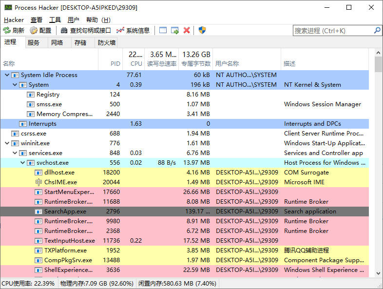 下载processhacker是一款开源的系统进程管理工具,主要用于监控和管理计算机上运行的进程、服务及网络连接,它提供比Windows任务管理器更详细的信息和更强大的控制功能,支持查看进程的线程、模块、句柄、内存占用等底层数据,并能实时监控CPU、内存、磁盘和网络资源使用情况,喜欢的可以下载!