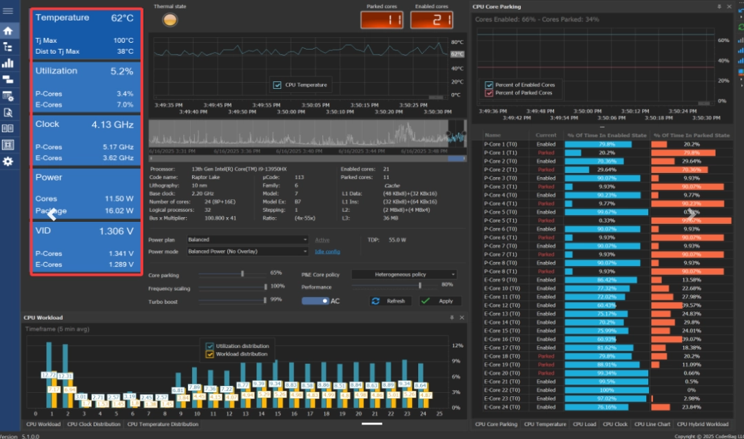 将预设配置文件的 core parking index 设置为 100%。