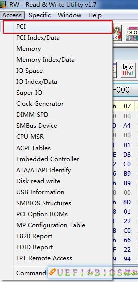 1、打开软件,点击Access-PCI,来到对应的窗口。