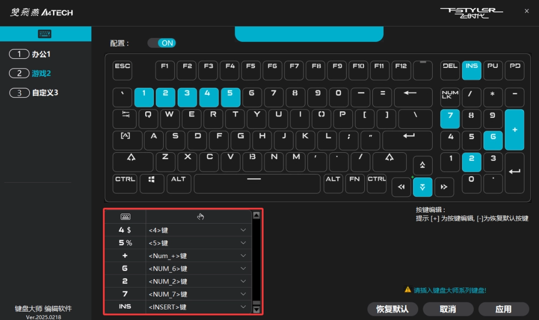 软件当中的键盘按键设置功能非常的简单,选择指定的按键之后就可以进行调整。
