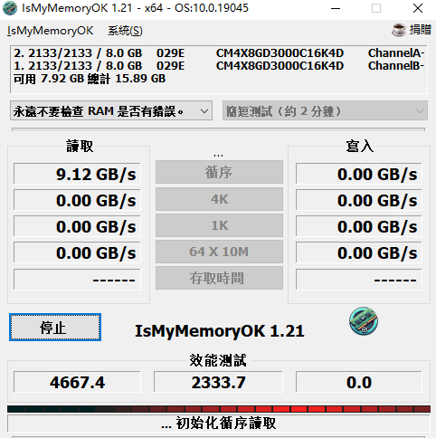 3、在进行检测的时候会详细的呈现出内存条的读取以及写入的情况,满足用户的使用需求。