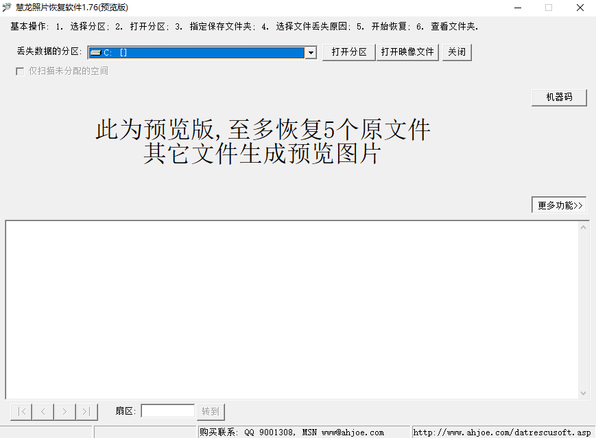本软件目前仅支持恢复JPG格式的照片文件(更多文件格式正在增加中),JPG格式是最流行的数码照片文件格式,绝大多数数码相机及拍照手机均采用该格式存储照片,因此慧龙照片恢复软件能胜任绝大多数照片文件的恢复任务,照片恢复的成功率也很高。