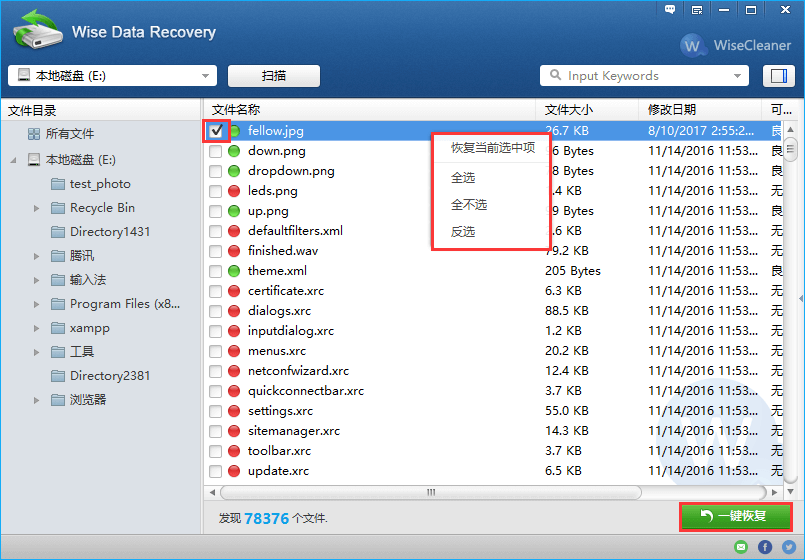 Wise Data Recovery是一款免费的数据恢复软件。它能扫描电脑、硬盘、U盘或存储卡中误删、格式化或系统崩溃导致的丢失文件。支持恢复文档、照片、视频等多种类型数据。操作简便,通过快速扫描或深层搜索找回文件,预览后选择恢复,是一款很不错的软件,对该软件感兴趣的小伙伴快来下载吧!