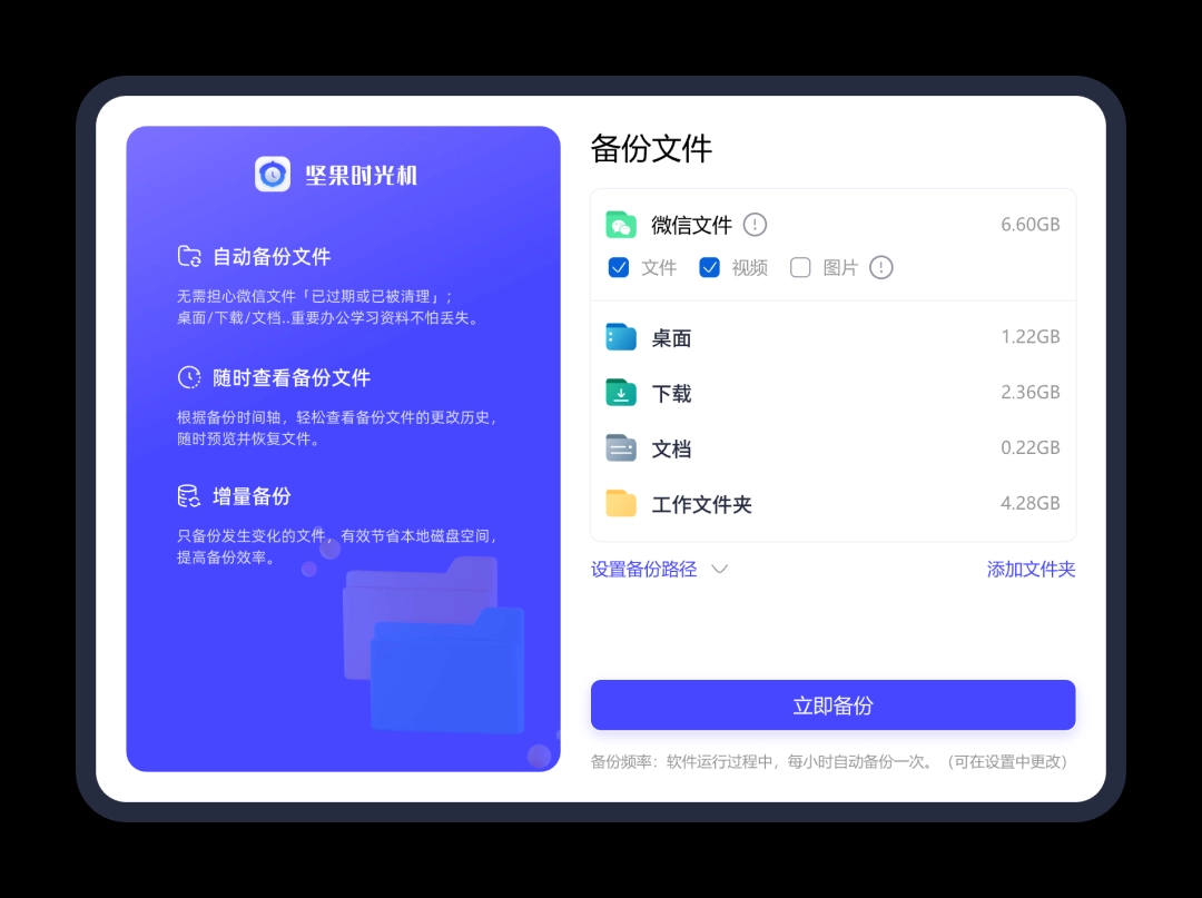 下载坚果时光机是一款免费的数据恢复备份软件,这款软件能够自动对用户电脑设备当中的文件进行备份,通过软件当中的功能可以有效的确保用户电脑数据的保护,更加安全的传输通道能够以防用户的数据泄露,是一款很不错的软件,对该软件感兴趣的小伙伴千万不要错过,快来下载体验吧!