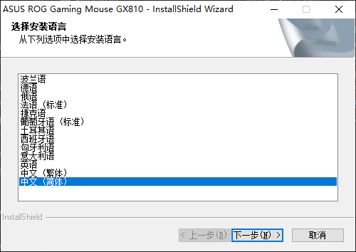 1、在本站下载华硕GX810无线游戏鼠标驱动,打开安装程序。