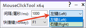 1、将MouseClickTool软件启动,可以在软件界面设置点击的按键;