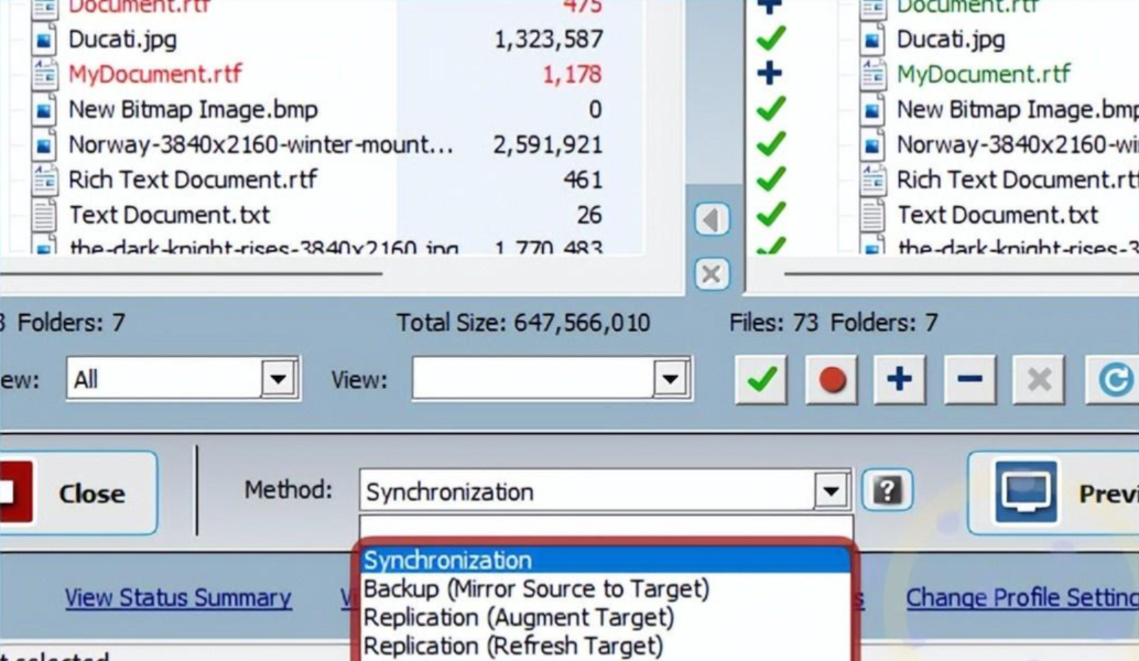 2、并排比较视图:展示源文件夹和目标文件夹的文件状态,方便用户确认同步操作。