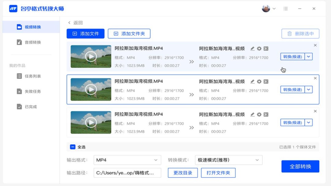 3、添加多个文件之后选好转换的格式再点击全部转换就可以了。