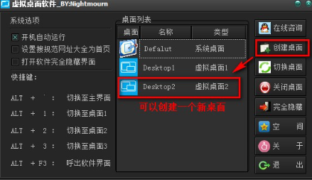2、随后我们可以点击右侧的创建界面来创建一个新桌面。