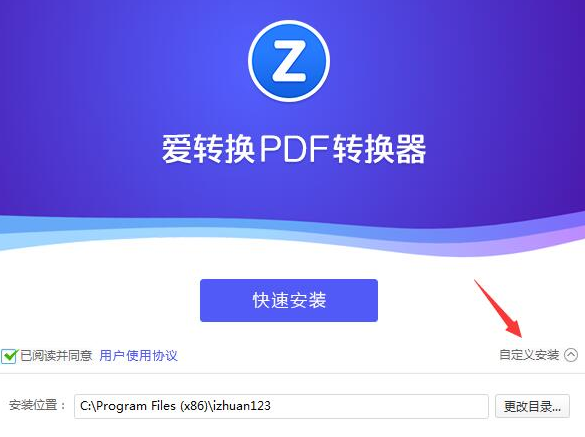 1、打开安装包,点击自定义安装,随后对目录进行设置。