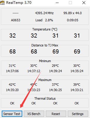 1、首先打开软件,点击左下角的【Sensor Test】开始测试。