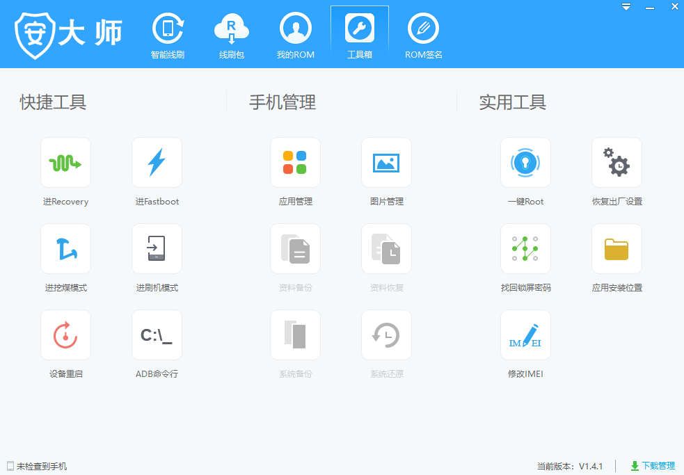 3、点击工具箱,还可以使用其他工具来管理安卓手机。