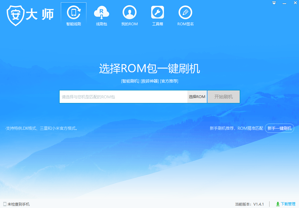 1、点击上方的智能线刷功能,选择ROM一键刷机。