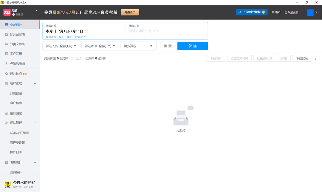 按水印/水印内容/时间等对照片快速分类,创建不同团队相册。