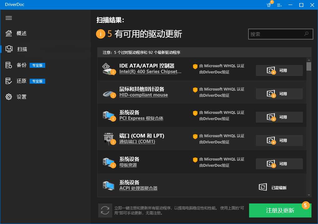 2、扫描后会显示可以升级的驱动。