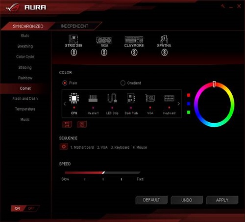共9种不同的自定义效果,充分利用了最新主板上更复杂的灯光控制模式。