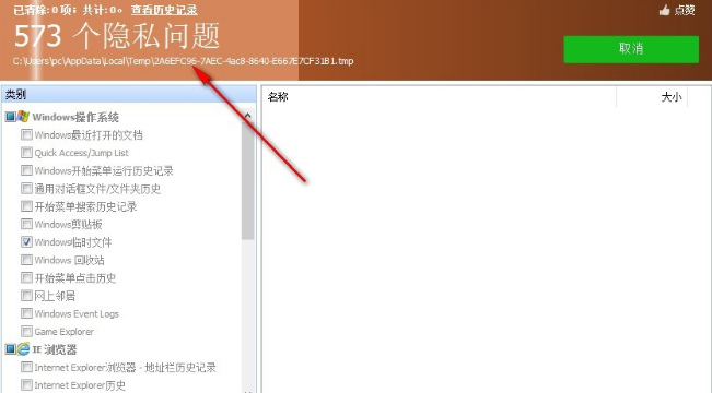 首先我们打开软件界面,此时就会自动扫描隐私的问题。
