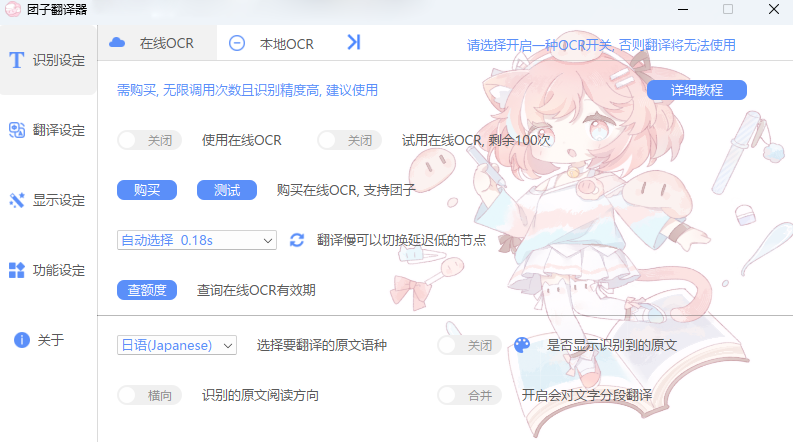 新加入了对【竖排文本的翻译模式】,额度为每天500次。可以啃生肉本啦 ~