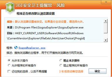 注:如果您电脑上安装了安全防护软件,在设置时可能会弹出风险的提示框,您选择“允许操作”即可,如下图所示。