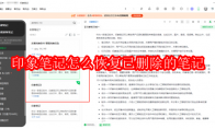 印象笔记软件是一款非常好用优质的笔记工具,一些用户对于如何恢复已经删除的笔记,还不是很了解。这里为大家带来关于已删除的笔记恢复方法介绍,想了解的小伙伴快一起来看看吧! 印象笔记怎么恢复已删除的笔记1、打开印象笔记,在左侧菜单栏找到【废纸篓】,找到误删的笔记,右键选择【还原笔记】(可以按住Ctrl同时选中多条笔记)。 2、可以看到笔记已经还原至其被删除之前所存储的笔记本中,如果这个笔记本之前已经被删除了,还原的笔记将被存放在我们的默认笔记本中。