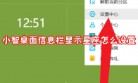 小智桌面信息栏显示星座怎么设置?小智桌面信息栏显示星座模式可以自己设置开启。很多小伙伴还不知道小智桌面信息栏显示星座怎么设置,下面给大家整理了小智桌面信息栏显示星座设置教程,让我们一起来看看吧。小智桌面信息栏显示星座怎么设置1、双击打开软件,点击右上角的三条横线图标,接着点击下方选项列表中的"设置中心"。 2、在打开的窗口界面中,点击左侧栏中的"待办"选项,然后找到右侧"信息栏显示"中的星座,将其小方框勾选上,最后点击选项框的下拉按钮,选择自己的星座就可以了。