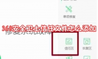360安全卫士信任文件怎么添加?360安全卫士信任文件可以自己进行手动添加。很多小伙伴还不知道360安全卫士信任文件怎么添加,下面给大家整理了360安全卫士信任文件添加教程,让我们一起来看看吧。360安全卫士信任文件怎么添加1、打开360安全卫士,在主界面点击“系统修复”选项。 2、然后点击“信任区”。 3、在弹出的文件选择窗口中,找到并选择你想要添加到信任列表的软件或文件,然后点击“信任”按钮即可。